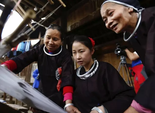 在十九大召開期間,粟田梅作為優(yōu)秀的傳統(tǒng)文化傳承者接受了采訪:“侗錦織造是老祖宗留下的手藝,不能丟了。我們有責(zé)任讓更多的年輕人喜歡它,把它發(fā)揚光大。”她正是用雙手,一絲一線實現(xiàn)自己一直堅持的侗錦夢。