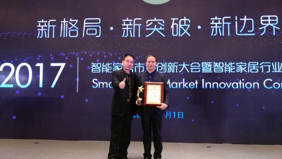 一年一度的智能家居行業(yè)年終盛典——2017智能家居市場創(chuàng)新大會,于2017年12月1日在杭州萬華國際酒店圓滿落幕。大會以“新格局·新突破·新邊界”為主題,圍繞智能家居集成領(lǐng)域應(yīng)用創(chuàng)新、人工智能落地場景、智能單品應(yīng)用與發(fā)展等熱點(diǎn)話題進(jìn)行了深入的研討和交流。廣東創(chuàng)明遮陽科技有限公司作為智能窗飾遮陽行業(yè)企業(yè)代表受邀出席了本次大會,并憑借Z-Wave智能網(wǎng)橋榮獲2017智能家居年度創(chuàng)新產(chǎn)品獎。