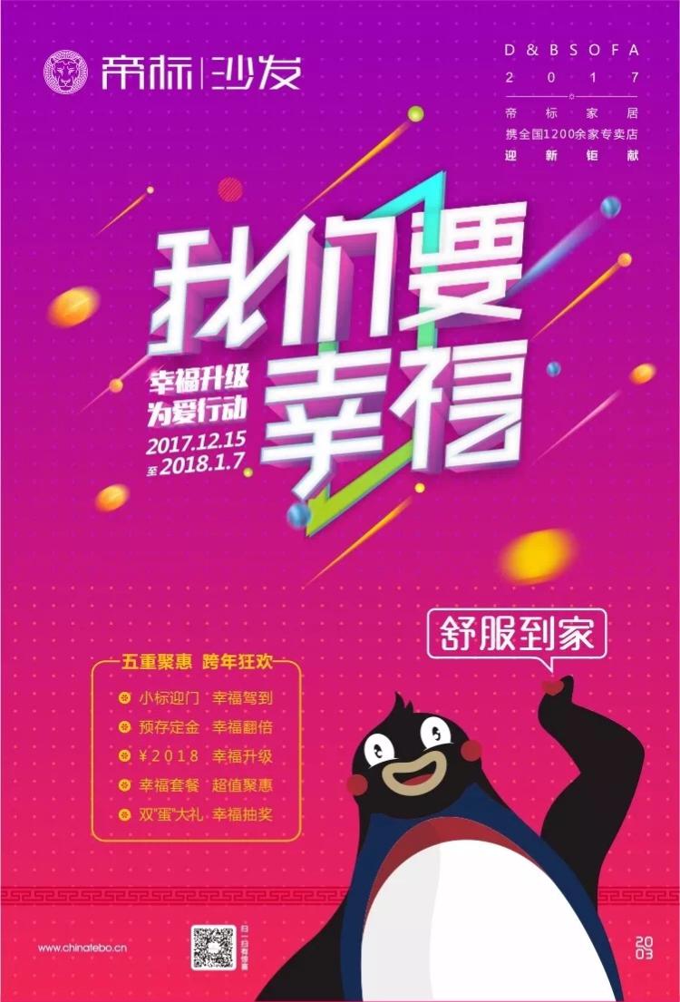 據(jù)悉,本次帝標打出“我們要幸福”的口號,在經(jīng)過一年的各月促銷廠購的探索和淬煉再度出發(fā),秉承幸福升級、為愛行動的理念,在雙節(jié)期間“12月15日至1月7日”為消費者帶來五重聚惠的跨年狂歡。
