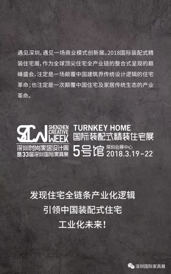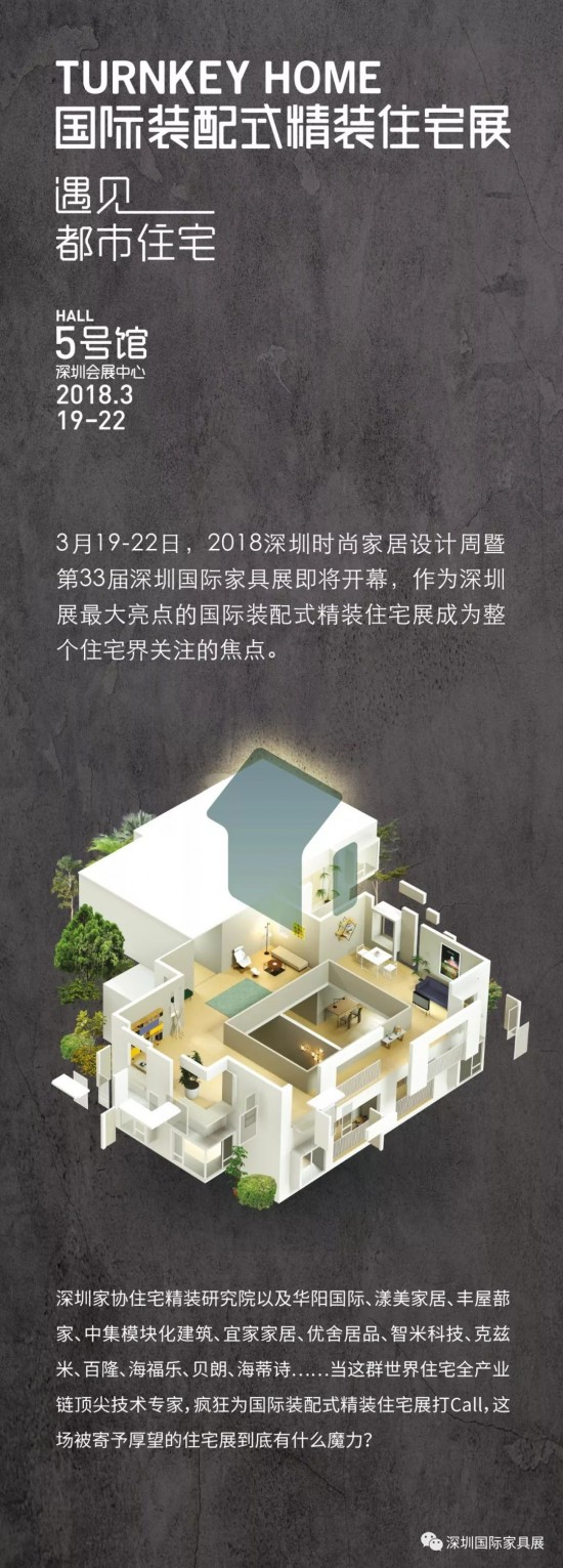 3月19-22日,2018深圳時尚家居設(shè)計周暨第33屆國際家具展即將開幕,作為深圳展最大亮點的國際裝配式精裝住宅展成為整個住宅屆關(guān)注的焦點。