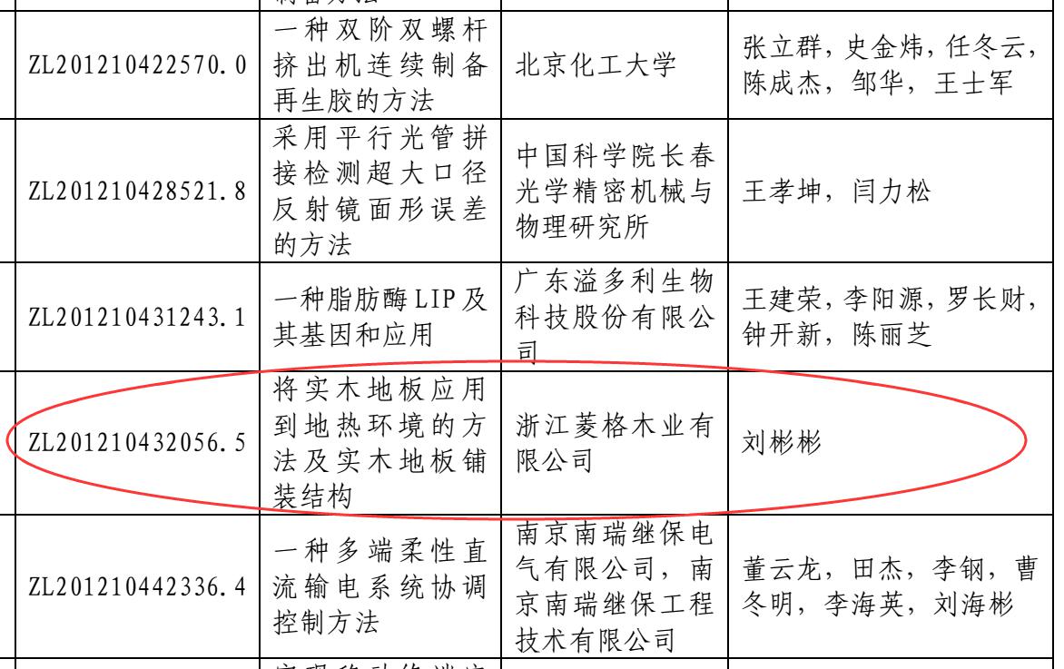 近日國家知識產(chǎn)權(quán)局公布了第十九屆中國專利獎評審結(jié)果,天格實木地?zé)岬匕鍛{借“將實木地板應(yīng)用到地?zé)岘h(huán)境的方法及實木地板鋪裝結(jié)構(gòu)”這一專利,與北京大學(xué)、中科院自動化所、三一重工、格力等眾多知名高校、科研院所及知名創(chuàng)新型企業(yè)一道,榮獲“中國專利優(yōu)秀獎”。