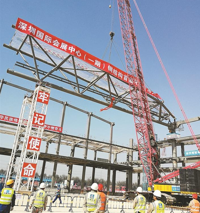 去年12月,深圳國際會展中心首榀鋼桁架開吊儀式舉行。