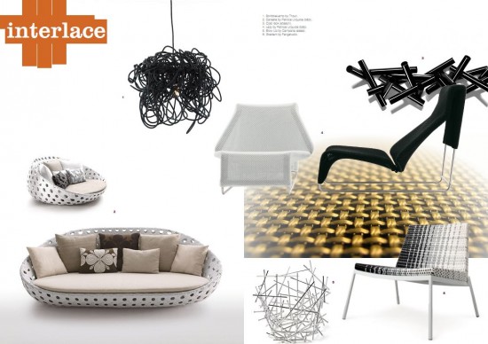 對潮流研究日益增加的興趣已經(jīng)從時裝行業(yè)延伸到鄰近行業(yè), 而今天已經(jīng)衍生到了“technologybased”即技術(shù)性行業(yè),這些行業(yè)在傳統(tǒng)上提升的潛力遠(yuǎn)勝于時裝行業(yè)。 再一次強調(diào),這些現(xiàn)象必須要解釋清楚與市場變化的關(guān)系,公司用這種途徑建立自己的競爭優(yōu)勢。起源于時裝行業(yè)的很多工具與過程模型已經(jīng)衍生到其他各種行業(yè),如:家具、交通工具、電子消費品等等。圖2是近年來采集到的潮流元素之一“交織(interlace)”,圖3是應(yīng)用這個“交織”元素所設(shè)計的家具。