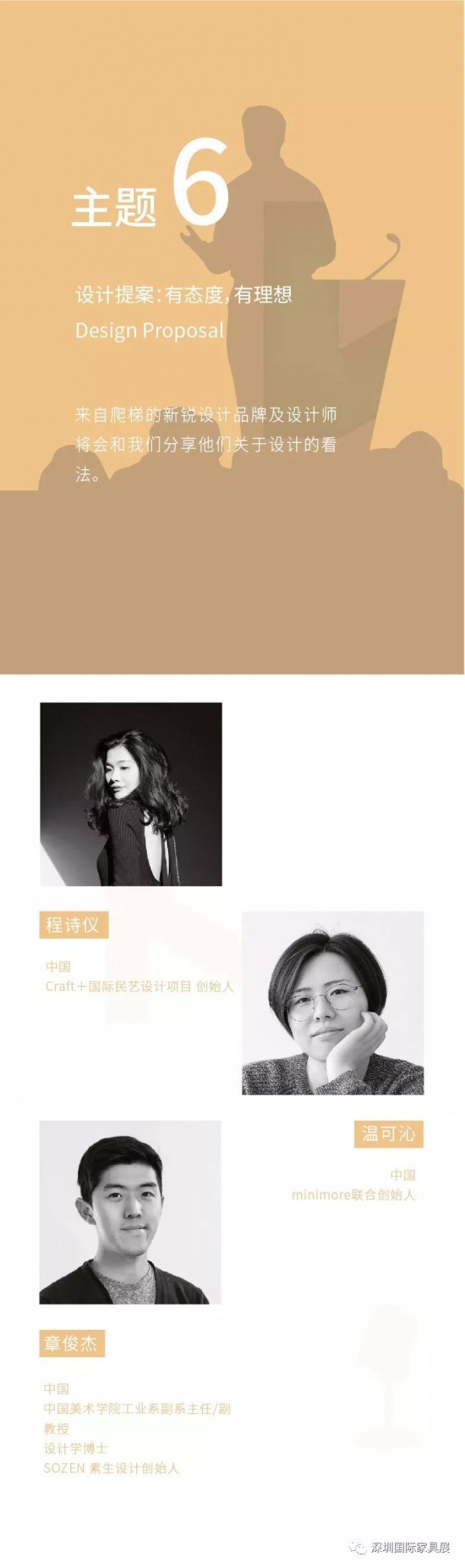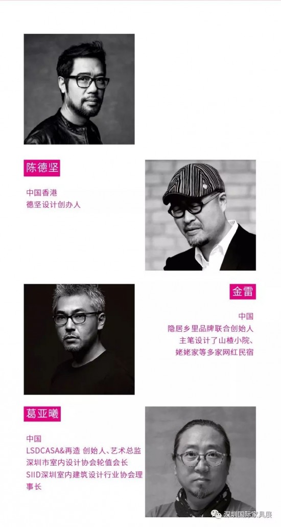 中國(guó)設(shè)計(jì)的昨天、今天與未來(lái),來(lái)自全球各國(guó)才華橫溢且成績(jī)斐然的設(shè)計(jì)師將在2018深圳時(shí)尚家居設(shè)計(jì)周暨33屆深圳國(guó)際家具展,綻放最?yuàn)Z目的光彩,重點(diǎn)關(guān)注這個(gè)時(shí)代設(shè)計(jì)行業(yè)的融合與未來(lái),傳遞全球設(shè)計(jì)巔峰思潮。
