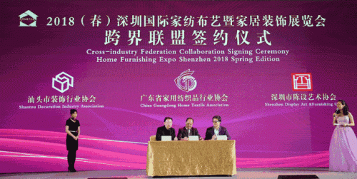 新的發(fā)展時(shí)期,傳統(tǒng)商業(yè)模式被顛覆,跨界、共享成為主旋律。為此,展會(huì)主辦方廣東省家用紡織品行業(yè)協(xié)會(huì)、承辦方深圳市博奧展覽有限公司,一直致力聯(lián)動(dòng)行業(yè)力量,凝聚優(yōu)質(zhì)資源,以全國(guó)的行業(yè)龍頭及深圳國(guó)際家紡家居展為依托,共同謀劃未來(lái)的大發(fā)展,構(gòu)建產(chǎn)業(yè)新格局。在2018(春)深圳國(guó)際家紡布藝暨家居裝飾展交流晚宴當(dāng)晚,由廣東省家紡協(xié)會(huì)與16家來(lái)自家居、家裝設(shè)計(jì)、家裝材料等領(lǐng)域的行業(yè)協(xié)會(huì),共同建立的跨界聯(lián)盟閃亮登場(chǎng),成為本屆展覽重要亮點(diǎn)之一,也意味著在深圳國(guó)際家紡家居展這個(gè)行業(yè)大平臺(tái)上,家居裝飾產(chǎn)業(yè)將進(jìn)一步融合,產(chǎn)業(yè)上下游實(shí)現(xiàn)更高位對(duì)接,而這也為業(yè)內(nèi)企業(yè)發(fā)展帶來(lái)更廣闊的前景和商機(jī)。