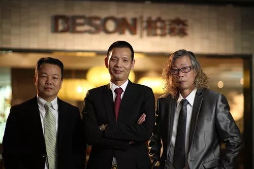 董事長黃志輝(中)、董事總裁兼設(shè)計(jì)總監(jiān)林富源(右)