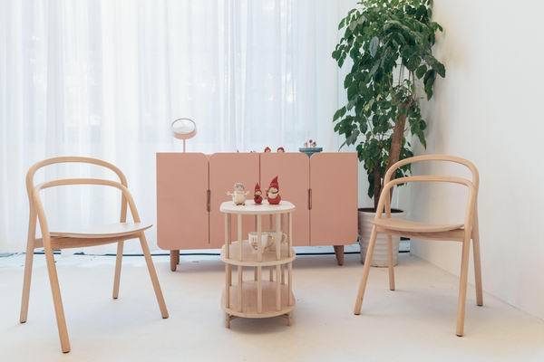 阿爾托系列邊柜由尖叫實(shí)驗(yàn)室聯(lián)合芬蘭知名設(shè)計(jì)工作室Aalto Aalto設(shè)計(jì)。設(shè)計(jì)上打破了傳統(tǒng)意義上對(duì)材料和形式的限制,采用在北歐廣泛流行的軟包材質(zhì)和硬質(zhì)材質(zhì)結(jié)合的手法,在視覺(jué)和觸覺(jué)上給人特別的感受。形式上也進(jìn)行了別出心裁的設(shè)計(jì),設(shè)計(jì)師為每一款都設(shè)計(jì)了專屬的弧線和配色。溫柔的粉色基礎(chǔ)柜以設(shè)計(jì)師Klaus Aalto的妻子Elina為名,優(yōu)雅中帶著處事不驚的沉穩(wěn)。墨綠色的邊柜勾勒著如森林起伏般的曲線,像精靈一般穿梭林間。藏青色邊柜如夜晚的深海,柔軟的軟包材質(zhì)猶如波浪起伏的水面。原木邊柜則保持了自然的原色,精細(xì)雕刻的曲線凹痕在陽(yáng)光下更現(xiàn)立體感。
