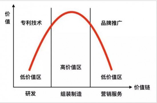 在談及這個(gè)“研究院”創(chuàng)立的目的時(shí),劉曉紅院長的思路非常清晰,她說:“過去企業(yè)總在談“微笑曲線”(圖3),誰都想做“研發(fā)和銷售”兩端,都認(rèn)為制造是低端的,沒有什么錢賺,都想把制造甩給別人,自己賺高附加值的兩端。