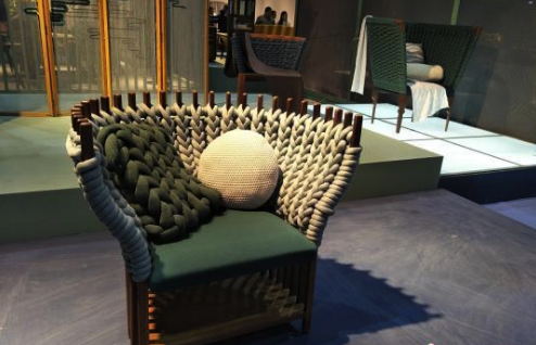 圖為現(xiàn)場展出編織設(shè)計的家具非常有趣