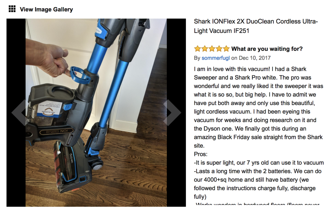 Lili表示,她在美國(guó)居住的城市休斯頓屬于南部熱帶地區(qū),樹(shù)木四季常青,加上地毯普遍使用的原因,非常容易造成各種花粉和塵土過(guò)敏。既然室外的環(huán)境避免不了,那么室內(nèi)的除塵要求就更高了。在購(gòu)買前自然少不了調(diào)查和比較,最后她選擇的是北美地區(qū)最炙手可熱的科技清潔品牌Shark,買入了Shark最新單品DuoClean 雙刷頭吸塵器。在amazon亞馬遜網(wǎng)站的同類產(chǎn)品中,該品牌單品同樣獲得了大批用戶的5星評(píng)價(jià)口碑。