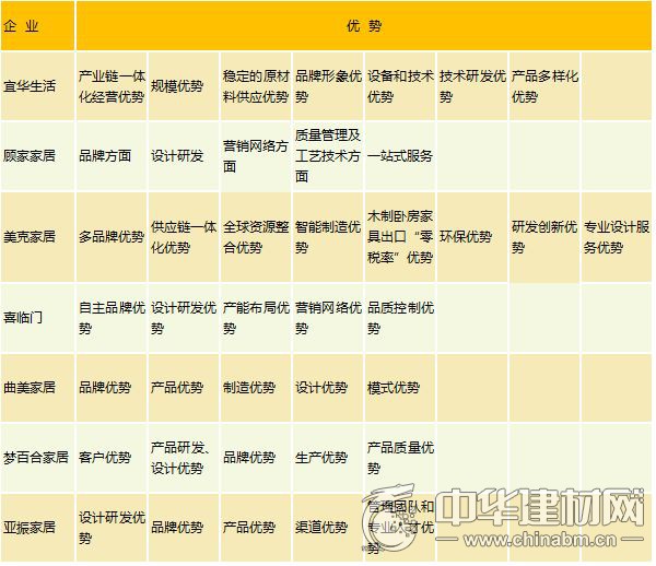 企業(yè)的核心競爭力不外乎品牌、產(chǎn)品、生產(chǎn)制造、設(shè)計研發(fā)、環(huán)保等幾個方面。雖然具體優(yōu)勢表現(xiàn)不盡相同,但大方向是一致,如環(huán)保方面都通過質(zhì)量管理體系認證,設(shè)計研發(fā)上都重視原創(chuàng)設(shè)計,擁有眾多自主知識產(chǎn)權(quán)的專利技術(shù)等。