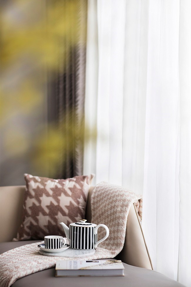 簡約現(xiàn)代的空間線條勾勒出輕緩的文化氛圍,雨花灰色的大理石地板與白色搭配,讓高級感和清透感同時凝煉表達,設(shè)計師巧妙地融入了今年最新的流行色——暖木棕,這種色彩穿梭在高級時尚與自然大地之間,賦予輕奢優(yōu)雅更新的生命氣息。