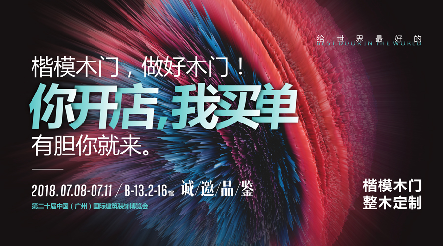 中國建博會(廣州),7月8號—11號,您不能錯過的楷模雙展盛宴!楷模是參展中國建博會極具代表性的企業(yè),是北京企業(yè)里第一個走向廣州建博會的木門企業(yè),自此也拉開了北企南展的開篇!楷模木門從一個9平米的參展攤位,發(fā)展到后來的一百多平米,兩百多平米、三百多平米的展位,2017年達到700多平米的展位,今年楷模又拿下兩個展位,從B館到D館??D鹃T的產(chǎn)品從單純的木門,發(fā)展到現(xiàn)在的整木定制,業(yè)已擁有覆蓋高、中、大眾消費的三大產(chǎn)品系列,并于今年廣州建博會期間,攜旗下楷模整木定制和樸拙原木定制雙品牌參展建博會。每一次參展楷模木門展位都會人頭攢動,每一次新品的推出都會引起行業(yè)的轟動!