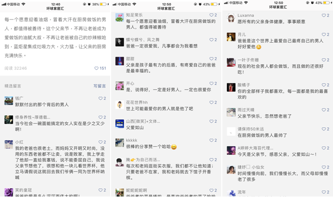 當(dāng)其他品牌沉浸在世界杯營銷時(shí),藍(lán)炬星集成灶沒有忘記6月另一個(gè)屬于男人的重要節(jié)日——父親節(jié)。有多少男孩的足球愛好啟蒙于父親,他們又有多久沒和父親一起看球賽了。藍(lán)炬星集成灶正是洞悉這點(diǎn),產(chǎn)出走心催淚的內(nèi)容,引來網(wǎng)友們的大量評(píng)論。“天下的老爸都這樣”、“流淚了,又想起了我的老爸”,大家的真情流露與互動(dòng),足以證明藍(lán)炬星集成灶這波內(nèi)容營銷的成功。