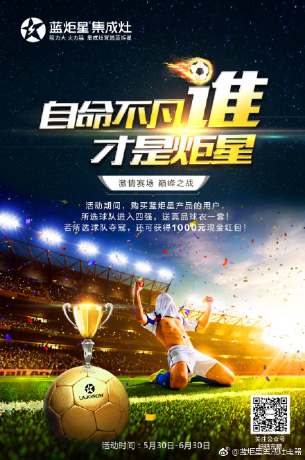 除了“款款動(dòng)人”的情感營銷,在很多企業(yè)還沒有反應(yīng)世界杯的來襲之時(shí),藍(lán)炬星集成灶就開展了世界杯營銷大戰(zhàn),多方渠道共同發(fā)起“自命不凡誰才是炬星”世界杯花式競(jìng)猜活動(dòng)。活動(dòng)自開展以來,受到了廣大群眾的追捧,也充分展示了藍(lán)炬星集成灶的品牌魅力以及過硬的產(chǎn)品實(shí)力。