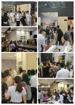 從早上9點開館開始,蒂亞娜展廳就開始陸陸續(xù)續(xù)有客商進入,從前廳接待處—新中式展區(qū)—現(xiàn)代風格展區(qū)—洽談區(qū),整條參觀動線幾乎持續(xù)保持爆滿狀態(tài)!