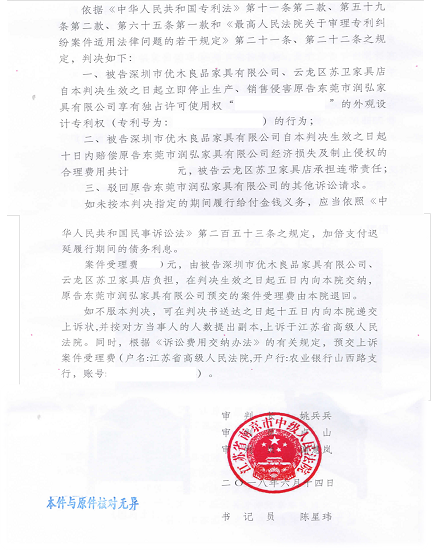 針對(duì)經(jīng)銷商提出的市場(chǎng)上模仿潤(rùn)弘家具產(chǎn)品,且惡意低價(jià)競(jìng)爭(zhēng)的不良現(xiàn)象,潤(rùn)弘家具通過(guò)加快維權(quán)步伐,終于在近期取得實(shí)質(zhì)性勝利。2017年8月,東莞市潤(rùn)弘家具有限公司旗下高端青少年實(shí)木家具品牌——豆丁莊園橡墅系列狀告中國(guó)優(yōu)木良品(深圳)有限公司旗下青少年兒童家具品牌——橡悅涉嫌抄襲,并提供充分的證據(jù)。經(jīng)過(guò)近一年的維權(quán),2018年6月,豆丁莊園橡墅系列產(chǎn)品的維權(quán)官司取得一審勝訴,根據(jù)判決結(jié)果橡悅品牌應(yīng)賠償相應(yīng)損失并下架相應(yīng)侵權(quán)產(chǎn)品。
