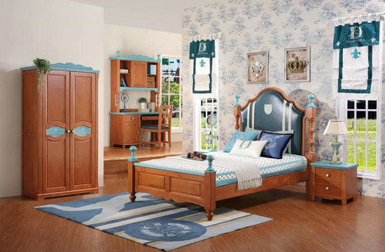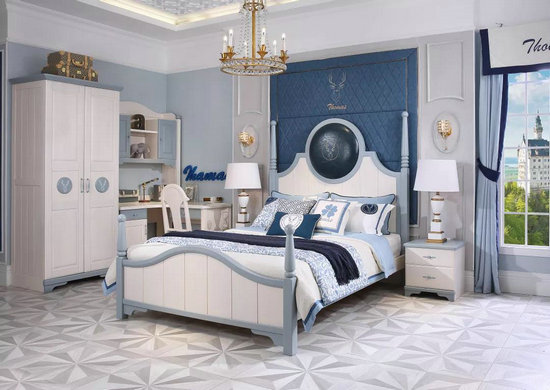 托瑪斯守護(hù)者套房盡顯父母之與孩子的貼心呵護(hù):高大厚重的床屏和守護(hù)柱帶給孩子充分的安全感,清新淡雅的湖光藍(lán)和椰奶白的色彩組合,有助于提高孩子的睡眠質(zhì)量。超纖皮圓形軟包材質(zhì),提升靠背的舒適度同時又保護(hù)小孩的身體免受磕碰。