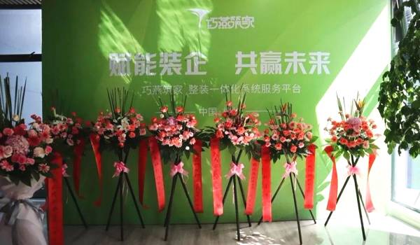 上午9點(diǎn),一場熱鬧的喬遷慶典在園區(qū)內(nèi)舉行,眾多企業(yè)送上花籃表示祝賀。慶典中,巧燕筑家創(chuàng)始人唐紅波、巧燕筑家CEO黃軻共同出席了揭牌儀式。