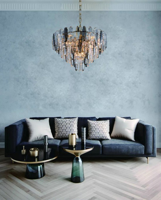 層層疊疊的垂飾,大小不一,體形不一,展現(xiàn)了燈具整體的美感,創(chuàng)造了一種融感性與理性的室內(nèi)環(huán)境。在輕奢風(fēng)中色彩選擇上,更加自由和灑脫,運(yùn)用了輕奢最常用的碳灰色,來演繹一種“低調(diào)的奢華”,令空間質(zhì)感更為飽滿。不同的造型、色彩、材質(zhì)、大小能為不同的居室營(yíng)造不同的光影效果,展現(xiàn)出不同的室內(nèi)氛圍,形成以簡(jiǎn)約的設(shè)計(jì)、時(shí)尚的藝術(shù)、奢華的格調(diào)。