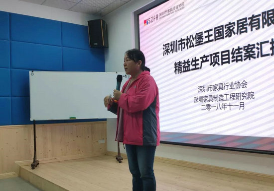 企業(yè)總監(jiān)唐亞卓首先感謝深圳家具制造工程研究院精益生產(chǎn)項(xiàng)目團(tuán)隊(duì)的幫助與指導(dǎo),同時(shí)為企業(yè)半年以來(lái)開展精益改善活動(dòng)取得的成果表示祝賀。也引申指出精益生產(chǎn)教會(huì)管理人什么,如何才能有效開展管理工作,在企業(yè)做一名怎樣的合格管理人,如何引領(lǐng)企業(yè)做正確的改善變革,走可持續(xù)發(fā)展之路。