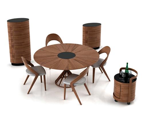 不同于其他家具的棱角分明與裝飾繁縟,百?gòu)?qiáng)馬丁的整體設(shè)計(jì)風(fēng)格更偏向于圓潤(rùn)與簡(jiǎn)約風(fēng)格的呈現(xiàn),以美國(guó)黑核桃木為主,在保留黑核桃木紋理的基礎(chǔ)上,涂以環(huán)保健康的木蠟油,既保證了天然木紋真實(shí)的觸感與觀感,又方便維修養(yǎng)護(hù),給人帶來(lái)更加愉悅的使用感受。一張圓形的餐桌,以中心的獨(dú)特承重結(jié)構(gòu)為支撐,四周沒有桌腿的設(shè)計(jì),用戶可以隨意調(diào)整椅子的位置;椅子坐墊和靠背以流線型的人體工學(xué)線條為基準(zhǔn)勾勒而成,從下、后、左、右四個(gè)方位給予或松軟或有力的承托,讓就餐者得到最好的坐感體驗(yàn)。