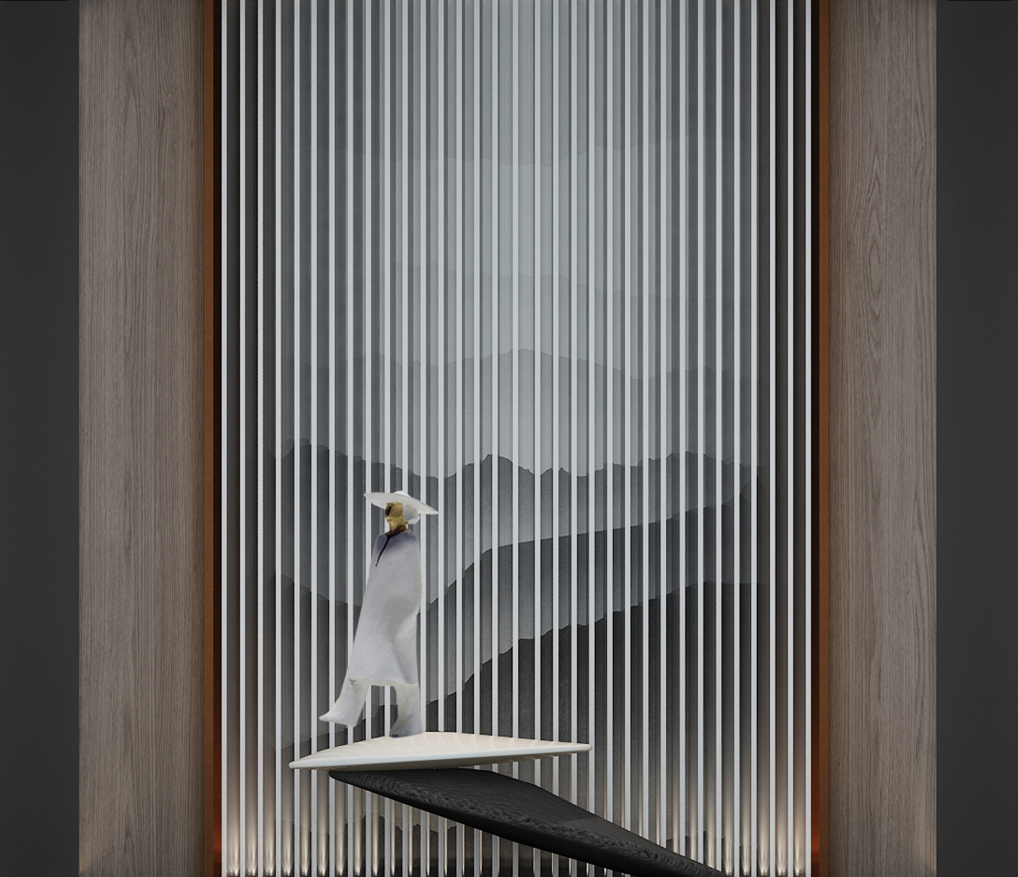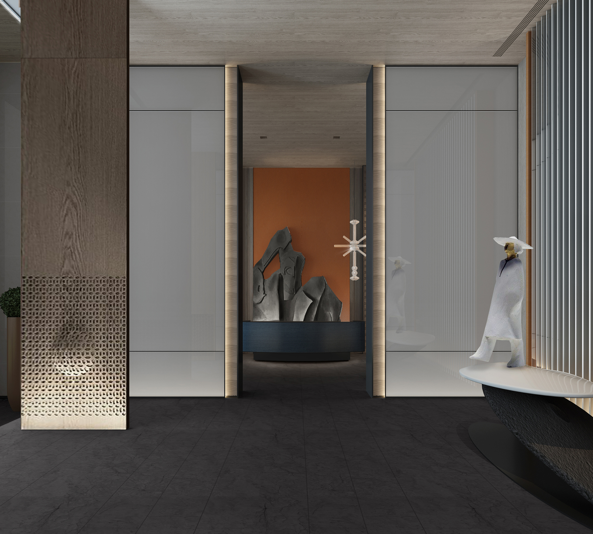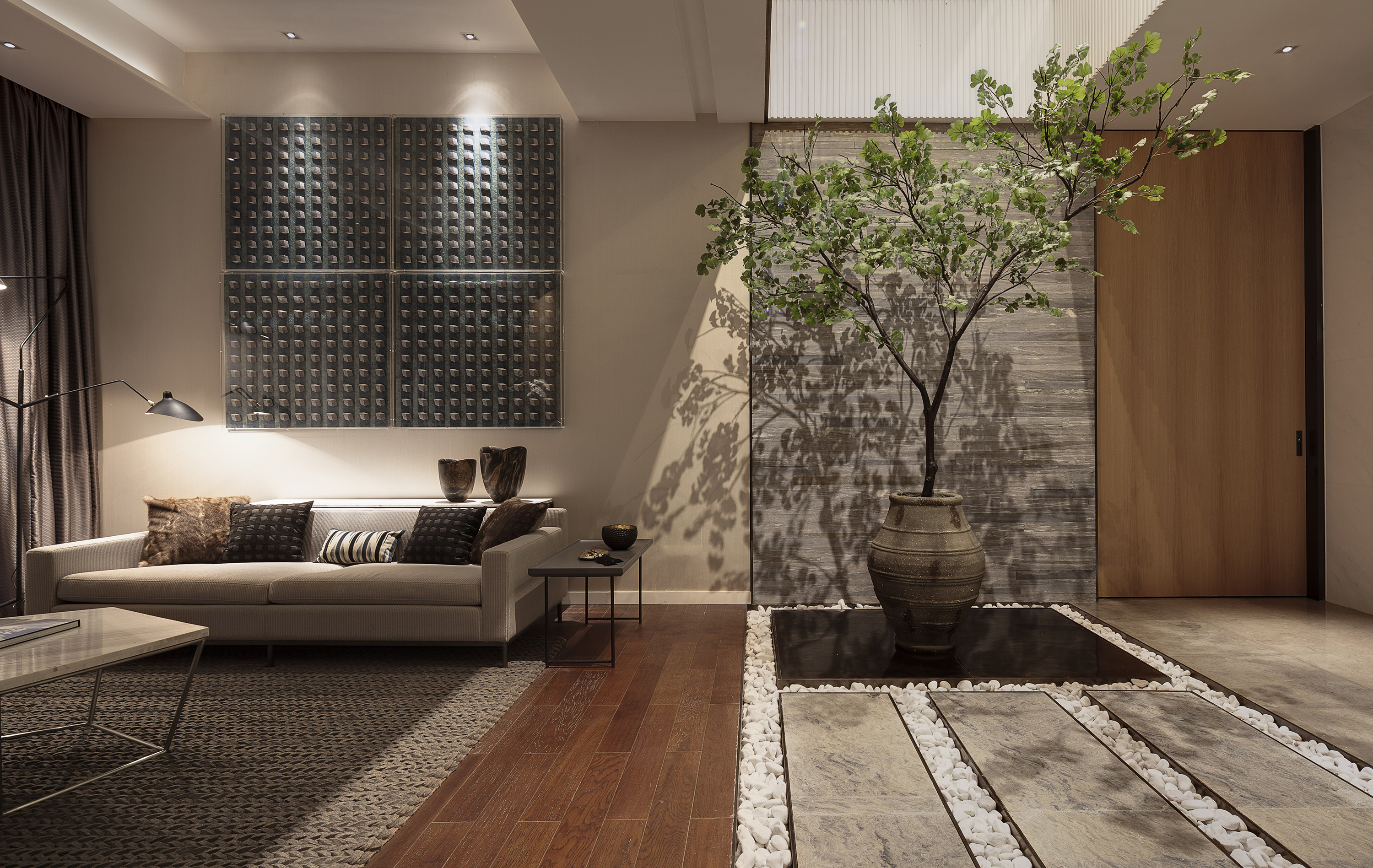 尋一處理想之所,安放身心與靈魂,這是人們的共同向往。設(shè)計開篇以一個逸靜悠遠(yuǎn)的藝術(shù)空間喚起人們心底的美好追尋。