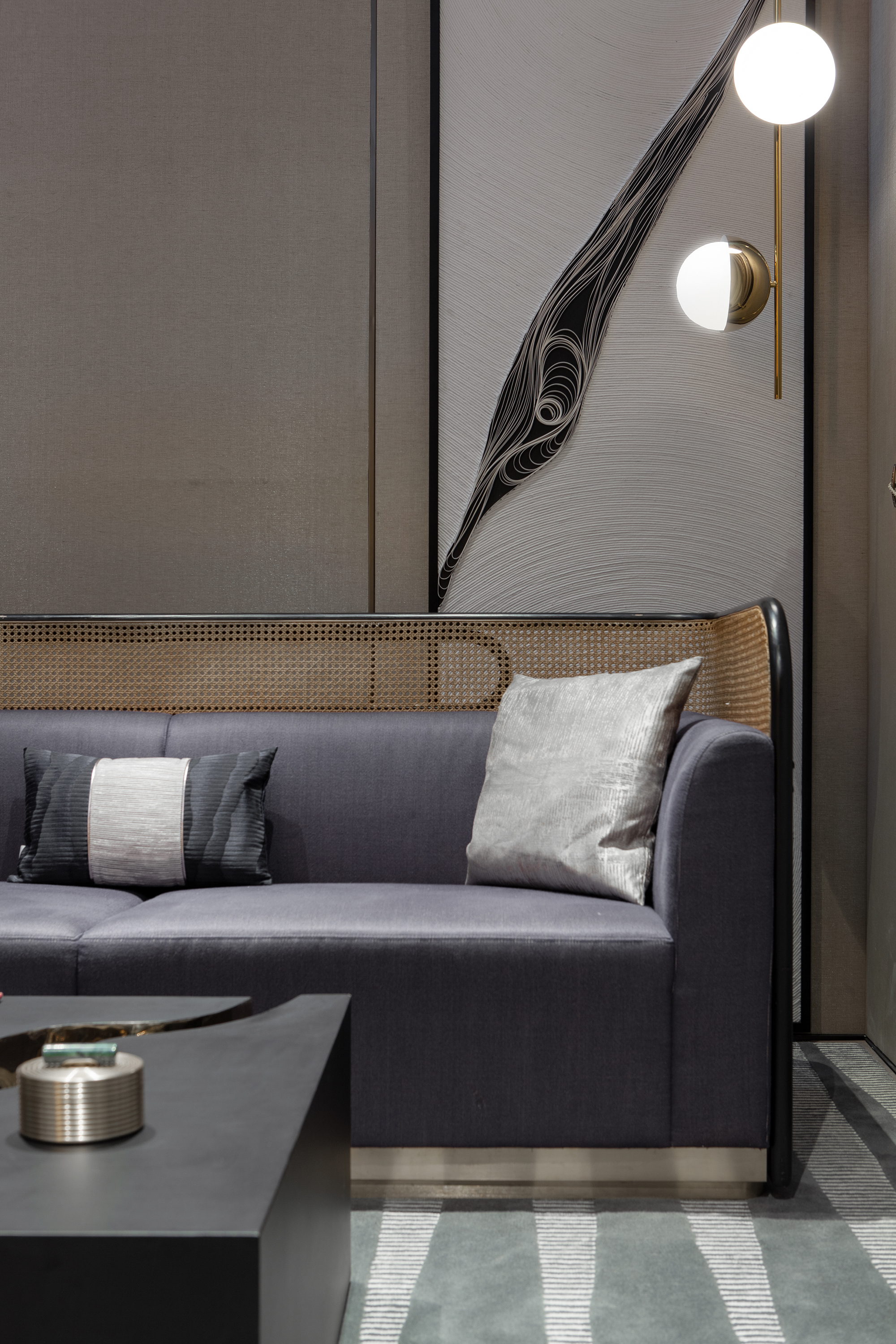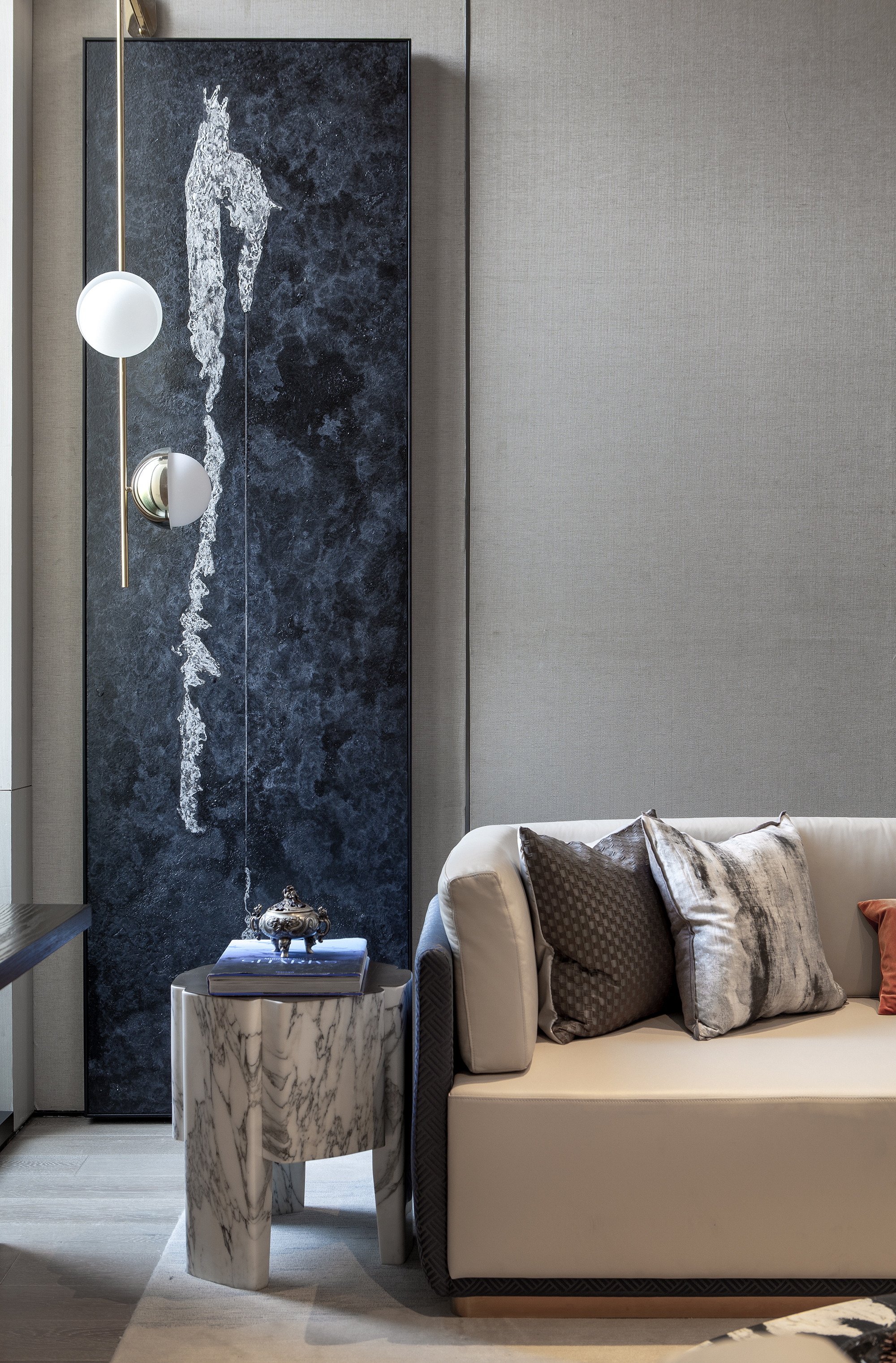 設(shè)計師匠心獨運地在當(dāng)代的空間架構(gòu)中融入了鮮活的東方風(fēng)情,半透的輕紗簾幕在微風(fēng)中蕩漾搖曳,古意盎然的配件擺設(shè)安然靜置,風(fēng)雅意蘊盡出。