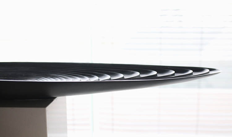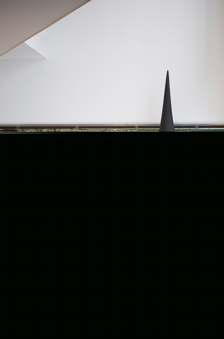洽談區(qū)的部品選取中國(guó)原創(chuàng)家具,其豐富的塊狀組合方式與空間設(shè)計(jì)語(yǔ)言有異曲同工之妙。沙發(fā)、地毯、桌幾、飾品等軟裝的酷黑,與硬裝的白色在空間中形成極具現(xiàn)代主義的視覺(jué)觀感。干凈的桌面上獨(dú)放姿彩的天堂鳥(niǎo),用向上生長(zhǎng)的姿態(tài),禮贊自然的生命力。
