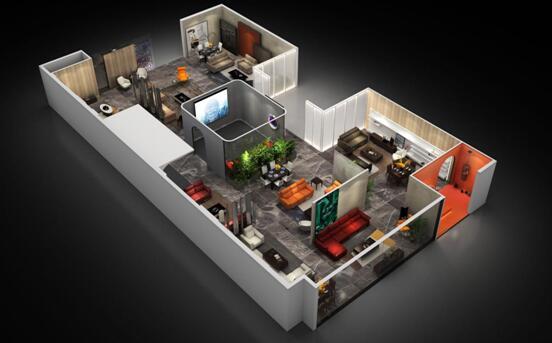 充分運(yùn)用聲、光、電、色彩等多維度體驗(yàn),黑白色調(diào)的太空艙,紅灰色調(diào)結(jié)合的動(dòng)感空間,LED大屏,炫酷的3D投影、五感體驗(yàn)等,家居空間通過(guò)色彩的搭配、聲光的炫酷,使整個(gè)空間的顏色和諧自然,展現(xiàn)出更為年輕時(shí)尚的家具空間形式,享受視覺(jué)和聽(tīng)覺(jué)的雙重審美愉悅,自在悠游,沉醉其中。