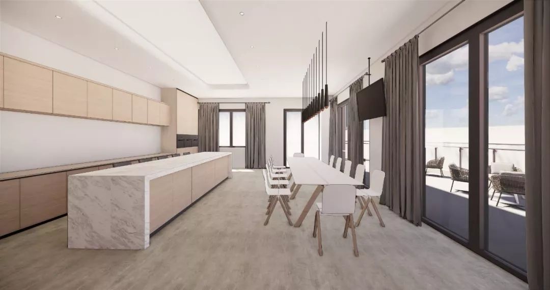 烘焙室簡(jiǎn)單分為烘焙操作區(qū)與圍坐品嘗區(qū),鄰里可協(xié)作烘焙、分享美味,其廣闊空間亦支持開(kāi)展小型烘焙教學(xué)活動(dòng),觀景陽(yáng)臺(tái)上孩子們玩鬧一團(tuán),歡聲笑語(yǔ)不斷,給美好的午后時(shí)光標(biāo)記上西點(diǎn)味的輕快氣息。