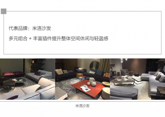 同時,年輕消費者對于沙發(fā)的組合需求更靈活,常見的轉(zhuǎn)角位與直排位已經(jīng)略顯傳統(tǒng),展會上沙發(fā)的組合形式明顯更加多元,主要表現(xiàn)為:
