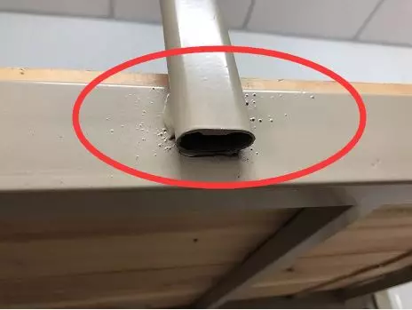 金屬床架焊接處飛濺及金屬管件端部未封口