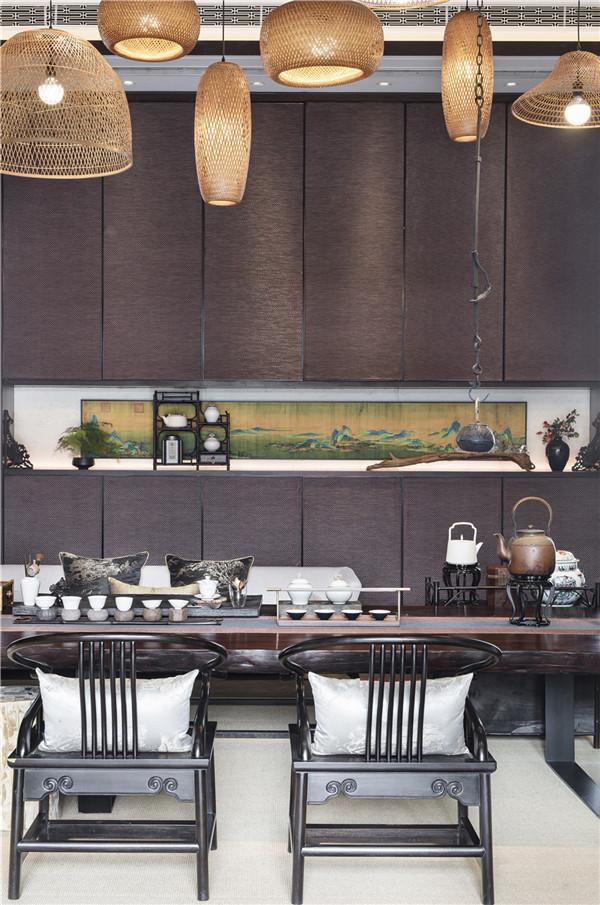 “承襲人文之間,創(chuàng)新意想之余”,創(chuàng)時(shí)空在設(shè)計(jì)中,鋪展傳統(tǒng)木雕的古典韻味,融注書(shū)畫(huà)的意趣情致,國(guó)學(xué)書(shū)院的翰墨書(shū)香與文人雅士的生活場(chǎng)景交疊、相合,營(yíng)造一個(gè)詩(shī)茶交游、乘興盡致的高雅中式空間,構(gòu)就文蘊(yùn)綿長(zhǎng)的精神棲居地。