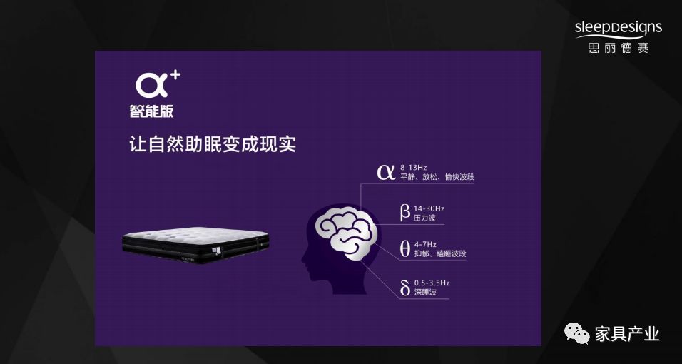 此外思麗德賽還全新推出了“黑科技”α智能版床墊,它能夠記錄助眠波段和睡眠情況,進(jìn)行智能分析學(xué)習(xí),釋放α腦電波,實(shí)現(xiàn)個性化助眠,引人進(jìn)入深睡眠。還能搭配手機(jī)APP感知人體睡眠情況,反饋每次睡眠數(shù)據(jù)。