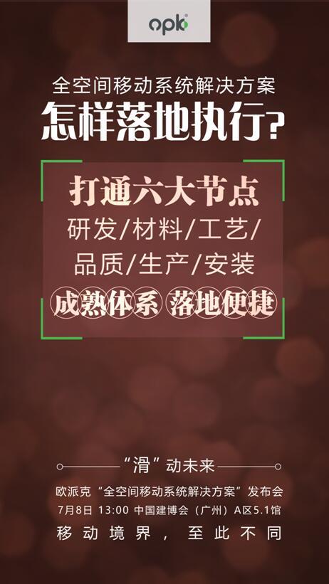 想見證歐派克如何用滑輪改變定制未來?想與歐派克一起抓住定制轉(zhuǎn)型新機遇?2019年7月8日下午13點30分,“滑”動未來——歐派克“全空間移動系統(tǒng)解決方案”發(fā)布會,將在A區(qū)5.1館31號&53號正式啟幕,等你相約,一起開啟定制”滑“時代!