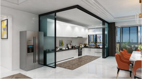 磁懸浮窄邊框隔斷門在廚房空間的應(yīng)用受到了眾多參展者的青睞,廚房空間的開放與封閉,可實現(xiàn)自如變換,家居設(shè)計的美感也很強(qiáng)烈,讓做飯之地變得從容自在。