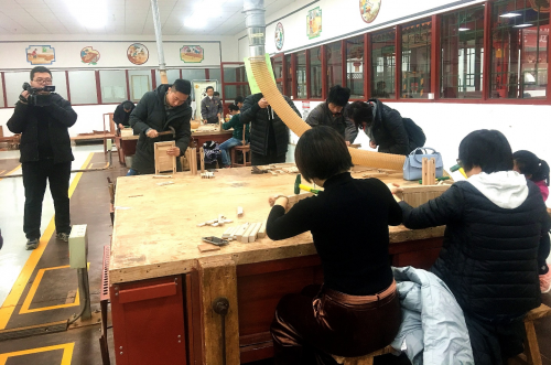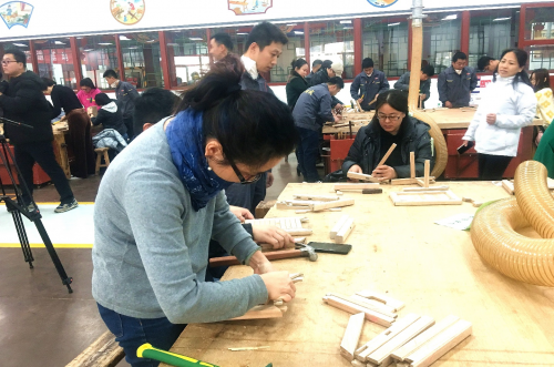 第三站:實地參觀龍順成“京作”家具制作各工序,并由龍順成“京作”家具制作傳承人結合不同工序的特點進行現(xiàn)場解說及演示。作為京作硬木技藝的核心,以不用一根鐵釘拼接、能使成百上千年而在人類輕工制造史上堪稱奇跡。