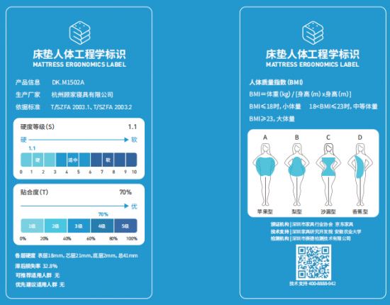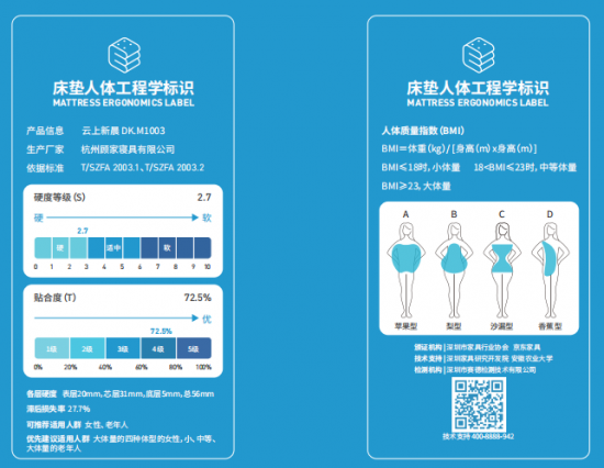 顧家家居部分產(chǎn)品床墊人體工程學(xué)標(biāo)識(shí)