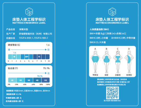 舒福德相關(guān)產(chǎn)品床墊人體工程學(xué)標識