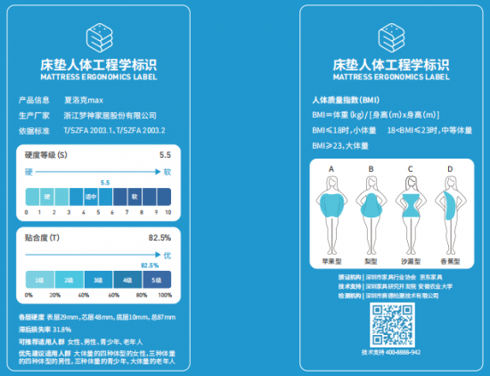 夢神相關(guān)產(chǎn)品床墊人體工程學(xué)標(biāo)識(shí)