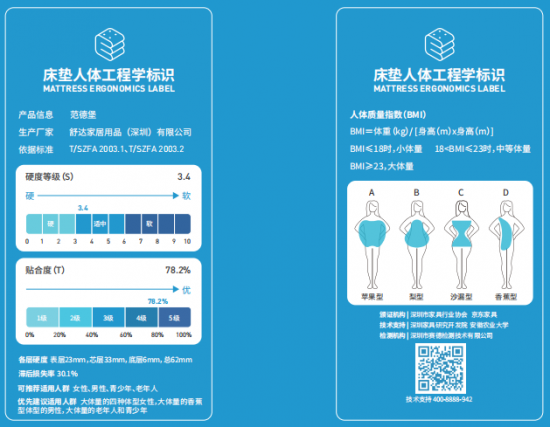 舒達產(chǎn)品床墊人體工程學(xué)標(biāo)識