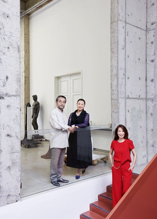 (隋建國夫婦與陳暄與隋建國美術(shù)館合影)