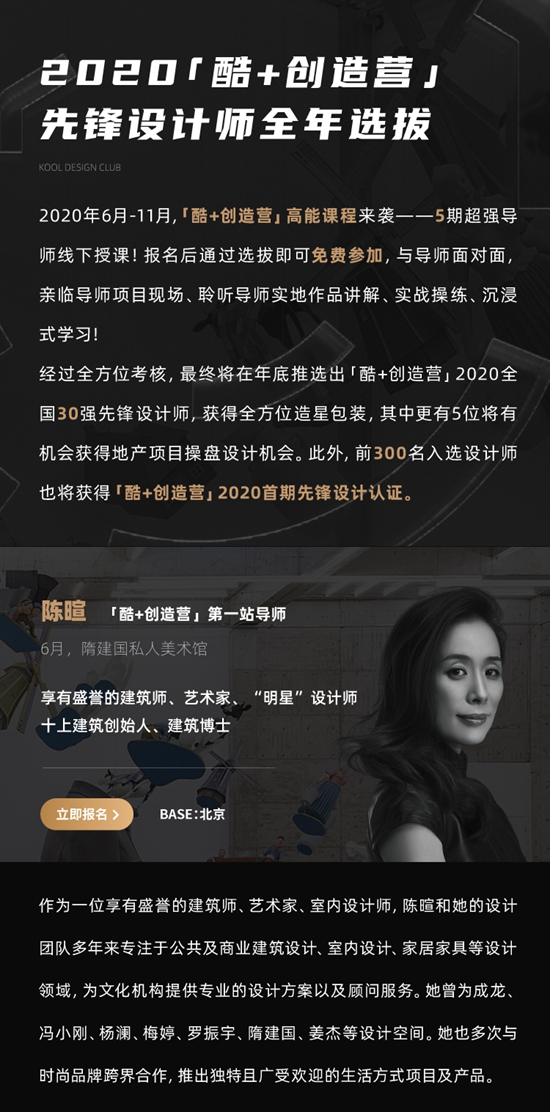 6月23日,新浪家居攜手酷家樂打造的「酷+創(chuàng)造營」第一站即將走進(jìn)北京,并邀請明星御用設(shè)計師陳暄帶領(lǐng)25位先鋒設(shè)計師,共同探訪這座極少對外開放的美術(shù)館——隋建國美術(shù)館,而這25位先鋒設(shè)計師可能就有你一席!(報名方式見文末)