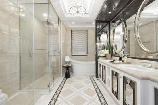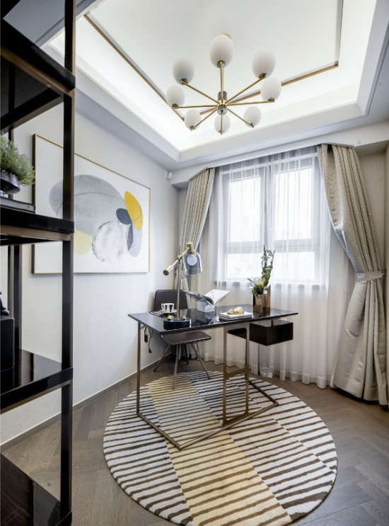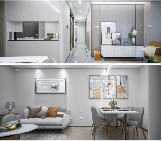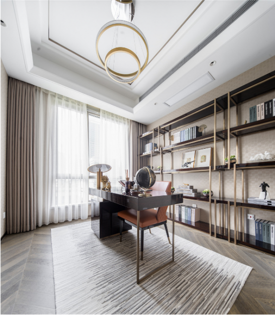 【黃柏元】:該作品因位于上海浦東陸家嘴高級地段,建筑在外觀設計上就很時尚,全部外墻采用鋁板現(xiàn)代設計,所以我們在室內(nèi)設計上也延續(xù)了這一特點,都采用現(xiàn)代、輕奢、時尚的設計。當然因我們作品的定位人群是高端中年族群,所以我們在設計風格上出了時尚輕奢外,也加入了一些現(xiàn)代簡歐元素,讓現(xiàn)代與古典融合,賦予了作品幾分貴族氣息。