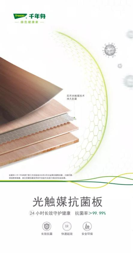 對(duì)于建材家居行業(yè)來說,健康環(huán)保是永恒的主題。疫情之后,人們對(duì)于建材家居產(chǎn)品的健康要求只會(huì)越來越高。基于這種消費(fèi)趨勢(shì),千年舟產(chǎn)品研發(fā)團(tuán)隊(duì)在行業(yè)內(nèi)率先推出“抗菌系列”產(chǎn)品,4月領(lǐng)先上市負(fù)離子凈醛生態(tài)板,8月“抗菌家族”再添新成員——光觸媒抗菌板。