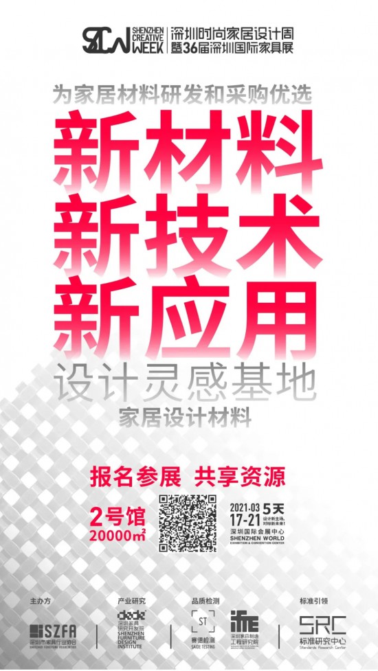 2021年3月17-21日,我們將為行業(yè)呈現(xiàn)一個(gè)全新的、以新材料、新技術(shù)和新應(yīng)用為核心的、融入國際設(shè)計(jì)的、家居制造應(yīng)用場景展示的國際潮流技術(shù)趨勢展示、教育與發(fā)布平臺(tái)。