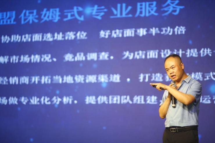 他給出八大保障系統(tǒng),確保經(jīng)銷商開店無憂,分別是:招商加盟、建店系統(tǒng)、培訓(xùn)系統(tǒng)、運營幫扶系統(tǒng)、品牌營銷系統(tǒng)、新零售系統(tǒng)、產(chǎn)品研發(fā)設(shè)計、客戶服務(wù)系統(tǒng)。