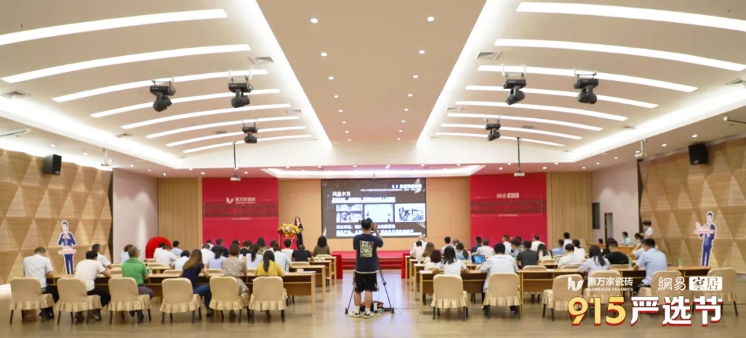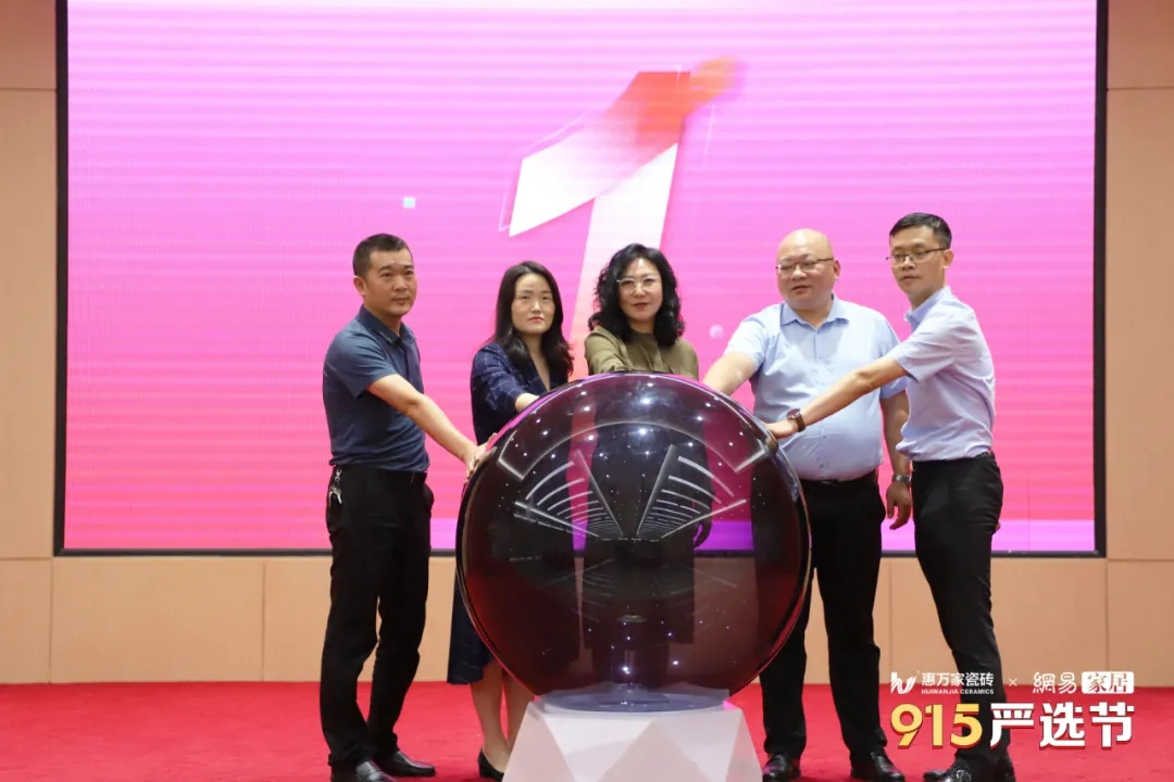 會上,由新明珠集團高總、網(wǎng)易家居鄭哲女士、惠萬家品牌龐總、市場二部招總及南?;萑f家楊總,共同按下啟動鍵,正式啟動惠萬家瓷磚915嚴選節(jié)。