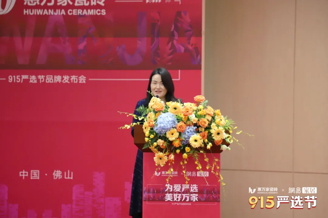 網(wǎng)易家居主編鄭哲女士發(fā)表《家裝不將就 瓷磚要嚴選》主題演講,從消費的角度剖析解讀了家居市場發(fā)展趨勢,通過對消費者需求變化的洞察,總結(jié)出當(dāng)下消費者選購瓷磚的指南,與惠萬家瓷磚一同為廣大消費者群體嚴選好產(chǎn)品。